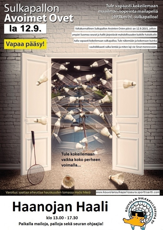 Nyt on mahdollisuus tulla tutustumaan sulkapalloon KAIKILLA halukkailla...